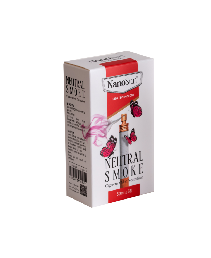 اجزاء موثره نوترال اسموک بر پایه روغن ها و عصاره های استخراجی از گیاهان و درختان فرموله شده و فاقد فرمالین، رنگ های مصنوعی و طبیعی، آنزیم، پارابن، الکل، مواد سمی بوده و پس از اتمام فرایند هیچگونه تحریک پوستی و تنفسی ایجاد نمی نماید.