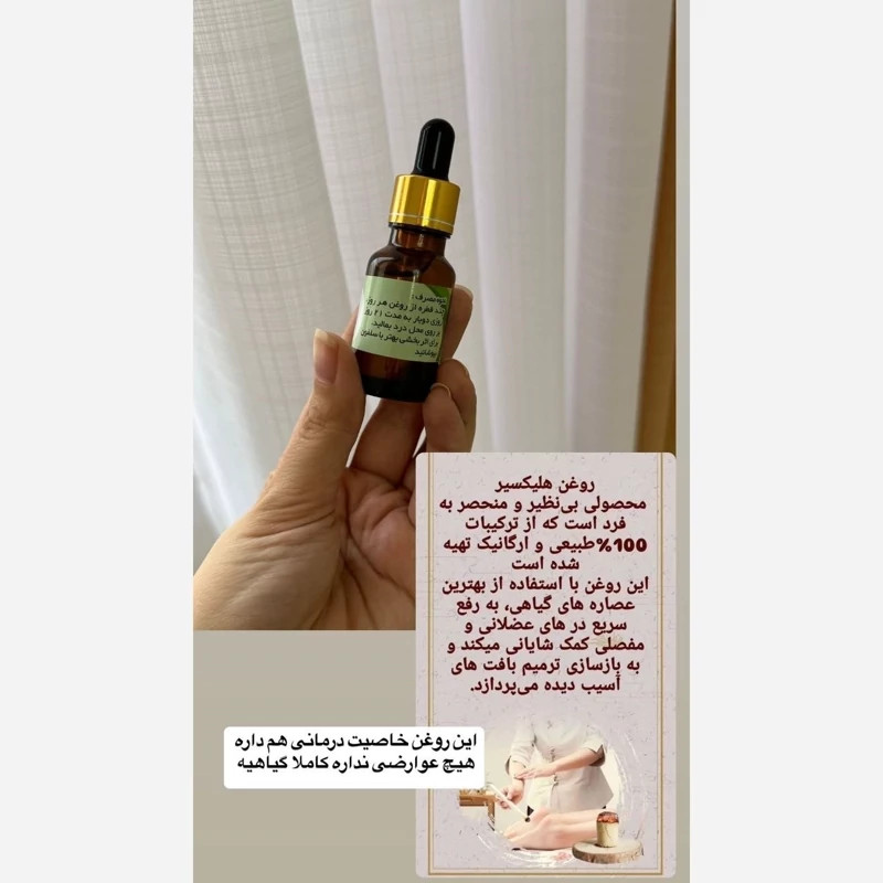حجم : 15 میل اندازه محصول : 5*3*9 سانتی متر اصالت کالا : اصل بهبود : درد حاصل از شکستگی استخوان/انواع سر درد ها/انواع دردهای مفصلی(سیاتیک کمردرد، دردهای گردنی مشکلات شانه، آرنج، زانو): حجم ۱۵ میل